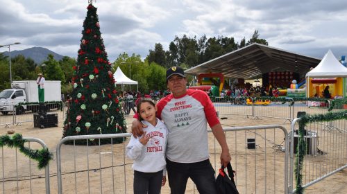 Uno de los momentos más esperados fue la llegada del Viejito Pascuero, quien fue recibido con entusiasmo y alegría por las familias presentes